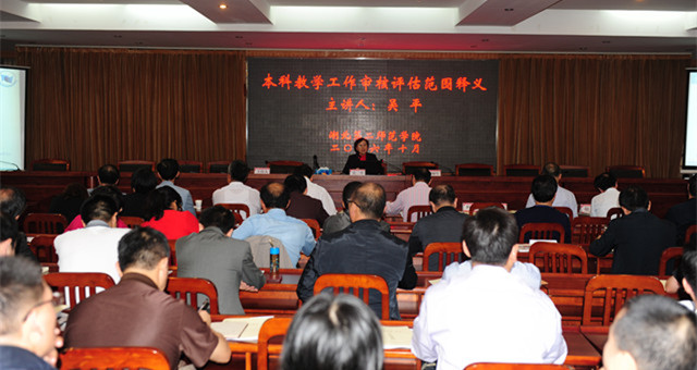 吴平教授以《本科教学工作审核评估范围释义》为题,从本科教学工作审核评估的基本概念、基本原则、考察重点的“五个度”以及审核项目、审核要素和审核要点出发,结合丰富的案例讲解了审核评估范围和工作重点。她指出,学校要明确教学定位与目标,把握好评估的基本原则,加强教师队伍的建设,以人才培养质量的提高为目标,严格细致的按照审核评估的项目、要素和要点做好各项工作。同时,她从专家进校考察视角,给我校下一阶段评估自建工作提出了指导性意见。