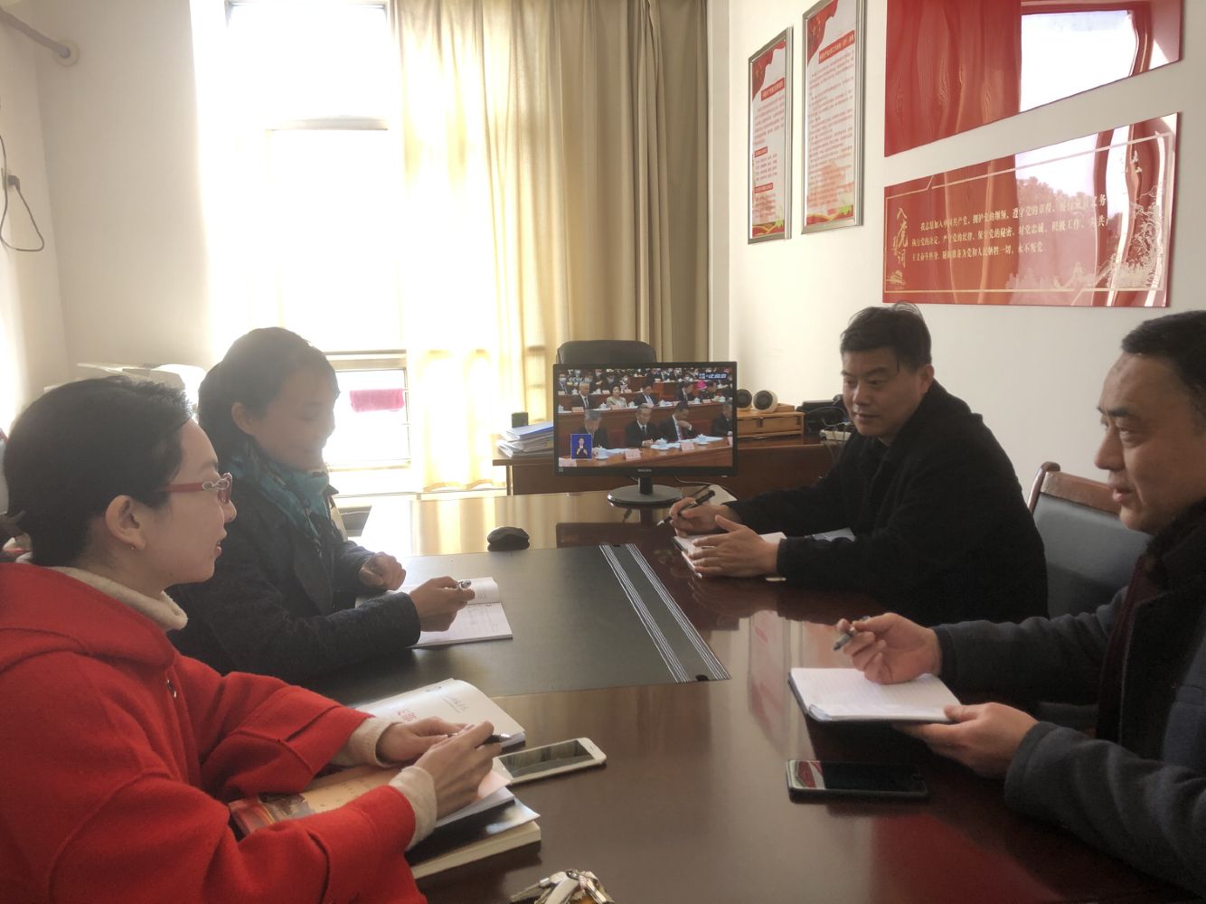 3月4日下午15:00质量评估处全体教职工在209党员活动室集中收看了政协十三届四次开幕会议。除1名人员因接受组织部公务派遣不能参加外,质评处其余5人均集中收看开幕会议并参加讨论,并要求未参加集中观看的人员通过手机客户端、微信等移动终端自行收看。