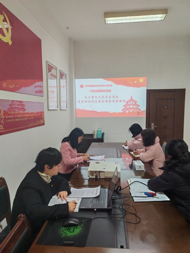 2024年12月30日,教学质量监测与评估中心党支部在209会议室召开12月主题党日活动,党员同志缴纳党费、学习党章,开展集中学习研讨,并在支部学习强国群开展讨论。