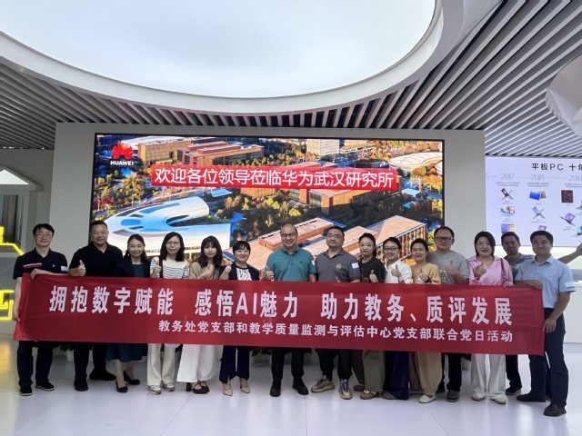 5月30日上午,教务处党支部和教学质量监测与评估中心党支部开展联合主题党日活动,两个党支部近15名党员走进华为武汉研究所,开展以“拥抱数字赋能,感悟AI魅力,助力教务、质评发展”为主题的参访交流活动。