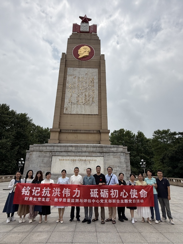 本网讯(通讯员 唐荣华)为深入贯彻中央八项规定精神学习教育,扎实开展“弘扬大别山精神、抗洪精神、抗疫精神”专项工作,6月24日,财务处党支部、教学质量监测与评估中心党支部全体党员共赴武汉江滩抗洪纪念碑及展览馆,以“铭记抗洪伟力 砥砺初心使命”为主题开展联合主题党日活动,共同回溯波澜壮阔的抗洪历史,感悟伟大抗洪精神的时代力量。