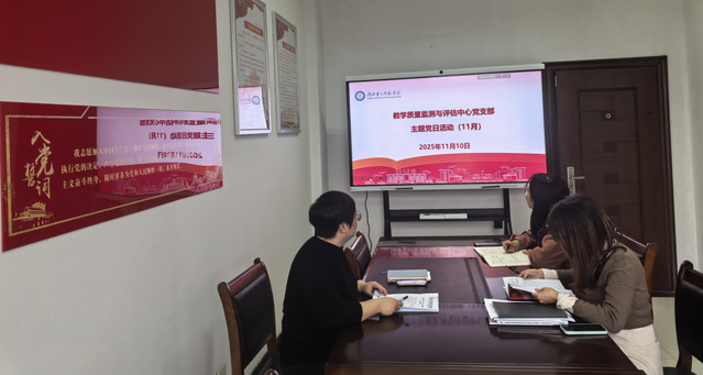 为深刻领会、准确把握党的二十届四中全会的核心要义与精神实质,切实将学习成果转化为推动工作的强大动力,2025年11月10日上午,教学质量监测与评估中心党支部召开了以“深入学习贯彻党的二十届四中全会精神,奋力推动学校高质量发展”为主题的党日活动。