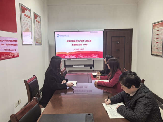 3月5日上午,教学质量监测与评估中心党支部围绕“树立和践行正确政绩观,坚持实事求是、求真务实”主题开展3月份“支部主题党日”活动,全体党员参与,将学习贯彻全国两会精神融入活动全过程,凝聚立足本职、护航学校教学高质量发展的实干合力。